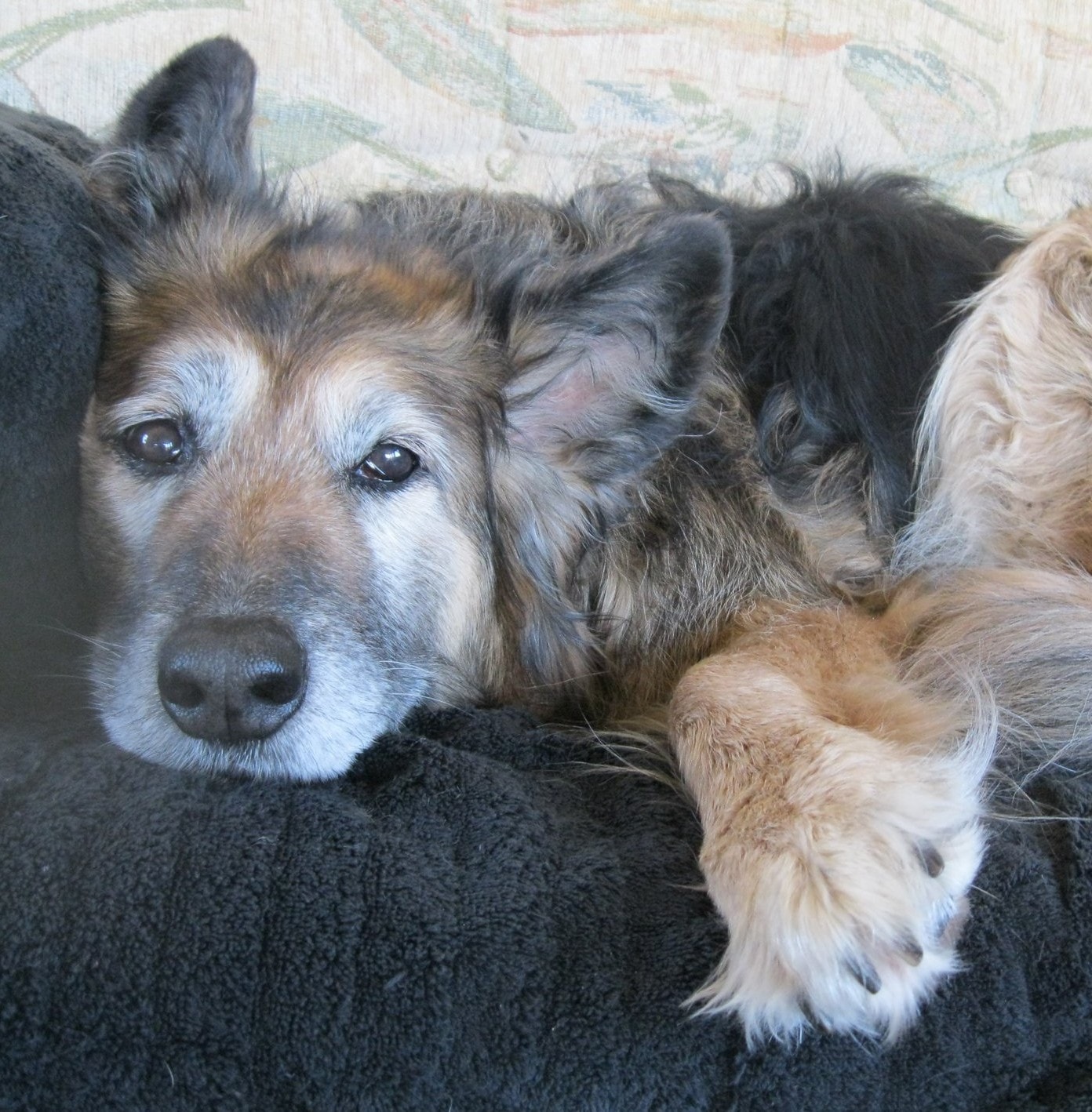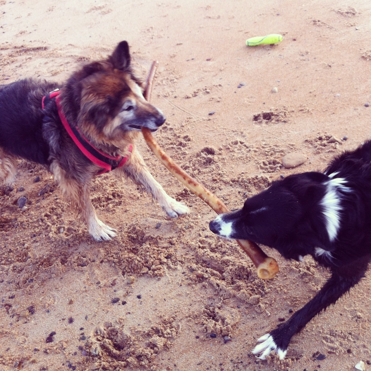 dogs from the older ones when it comes to exercise. Of course Misty is no longer capable of hiking or cycling which we do with the youngsters. However, buddy-ing your old dog up with a younger, respectful, active dog is a great way to encourage activity & exercise. The younger dogs sniff, wee, greet other dogs, chase balls, search for hidden toys in long grass & Misty wants to join in too. We encourage ‘turns’ so that she gets a chance, despite her partial sight & lack of speed, to join in the games. The younger dogs are encouraged to tug with her-which she’s always loved. She meets & greets other dogs where appropriate & occasionally has a flirt with an un-castrated male. Even oldies can enjoy the opposite sex.