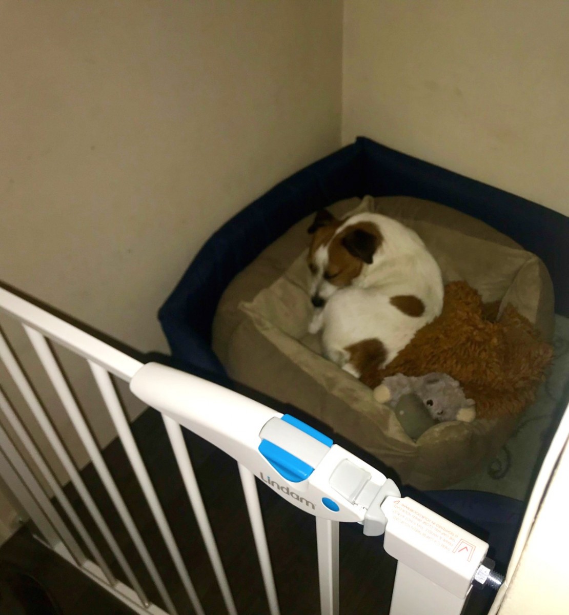 If Jellybean makes a noises that he is distressed or upset during this process, I will always make myself available to reassure, settle him down and make him feel better. But nap time will still take place in this new place, so I won’t open the gate again until he’s finished his sleep. With young puppies if you feel they need the toilet, please do bring them outside, then return them to their settle down space and start again. If your dog wakes up from his nap and you let him out of his safe space, but falls asleep again immediately, then put him back into his new sleeping zone as before to settle again. Remember you’re setting a routine that the place to settle is in this ‘safe space’ area.